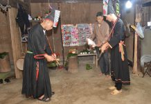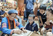 Tham gia hoạt động trải nghiệm nặn bánh trôi, ném còn tại không gian nhà sàn Tày.