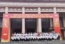 Học sinh Khối 8 – Trường THCS Chu Văn An chụp ảnh lưu niệm tại bảo tàng.
