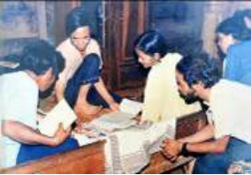 Cán bộ Nghiên cứu, sưu tầm của Bảo tàng Văn hóa các dân tộc Việt Nam ghi chép thông tin, tư liệu về bà con dân tộc Pu Peo năm 1990.