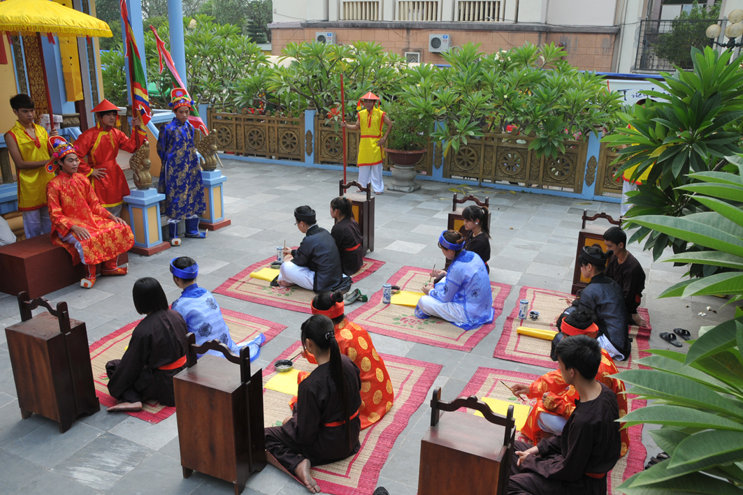 Sinh viên Trường Đại học Nông Lâm trình diễn và tái hiện một cuộc thi Hương, gắn với nền giáo dục Nho học thời kỳ Phong kiến Việt Nam (cuối thế kỷ XIX đầu thế kỷ XX) tại Bảo tàng Văn hóa các dân tộc Việt Nam, năm 2012.