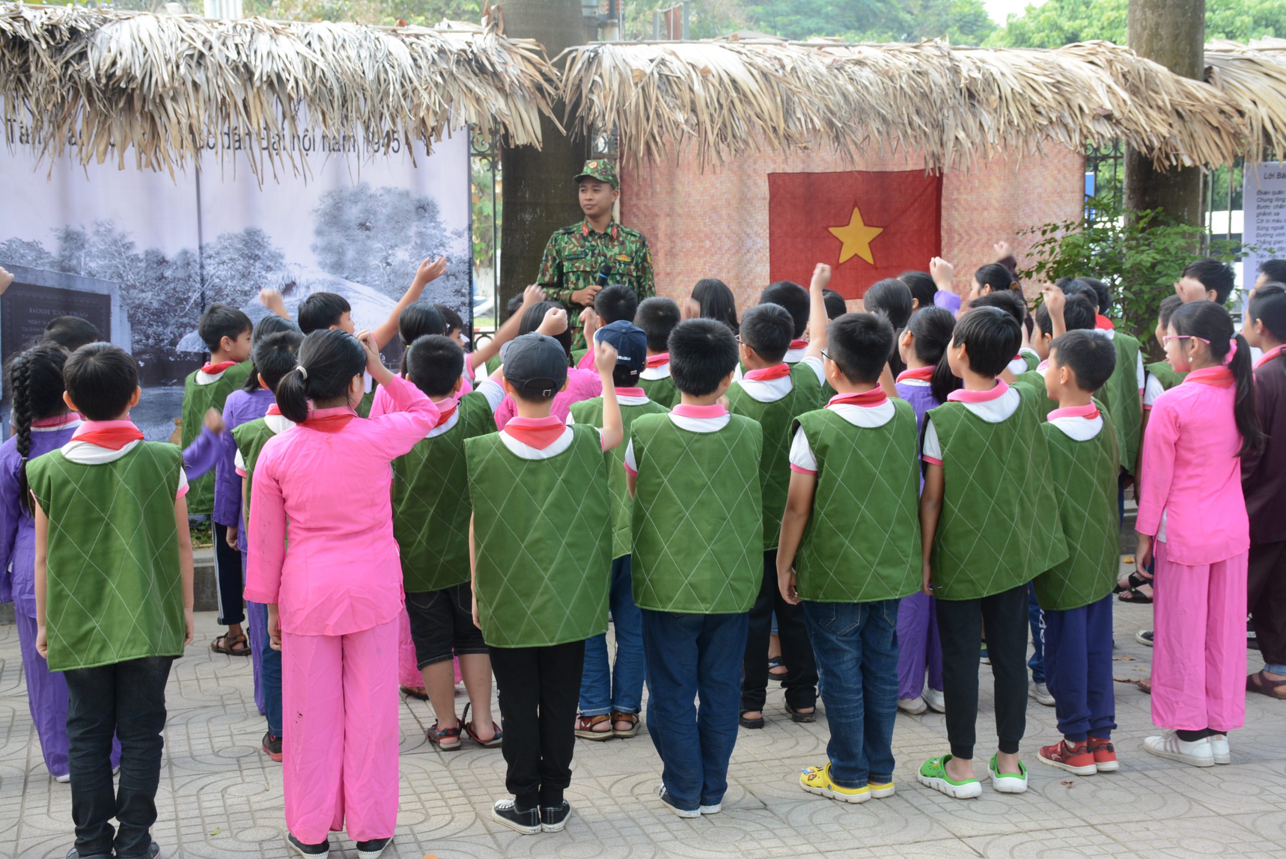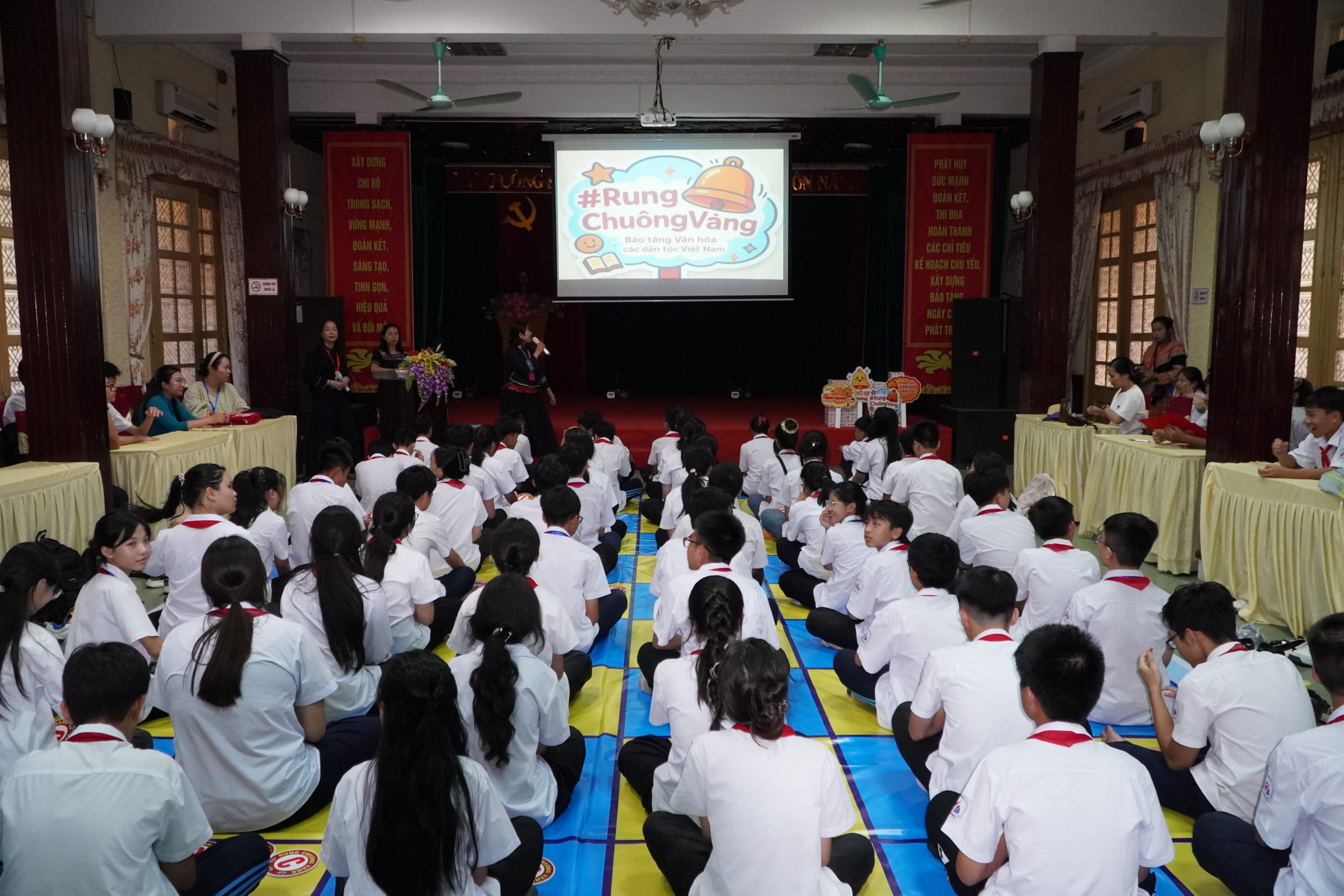 Học sinh tham gia trải nghiệm tái hiện “Đại hội Quốc dân”, trong chuỗi các hoạt động trải nghiệm với chủ đề “Sức mạnh truyền thống, kiến tạo giá trị tương lai” tại Bảo tàng Văn hóa các dân tộc Việt Nam, năm 2019