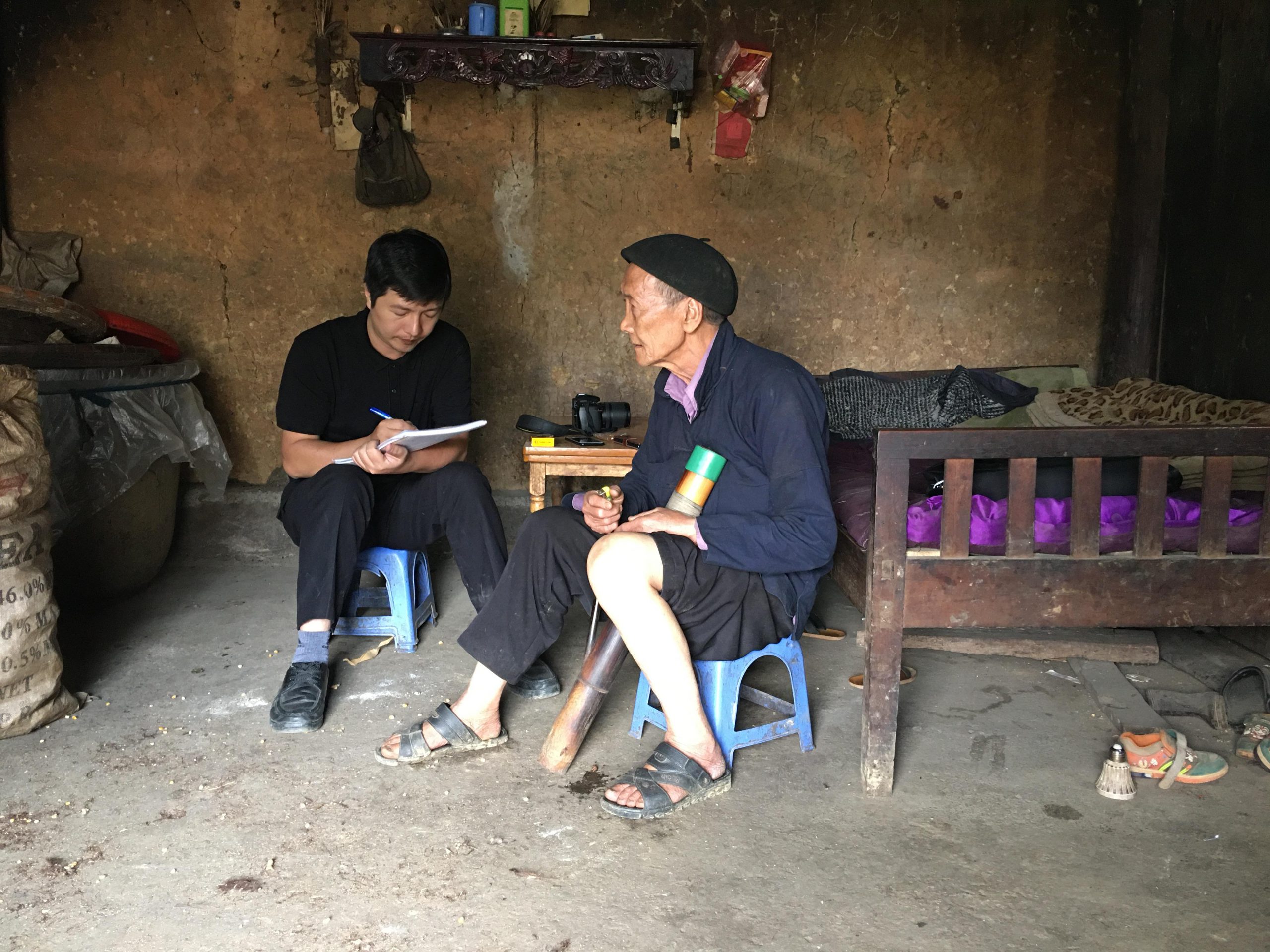 Ông Nguyễn Cảnh Phương, Phó Giám đốc Bảo tàng ghi chép và khai thác thông tin về văn hóa của người Cờ Lao, tại huyện Đồng Văn, tỉnh Hà Giang, năm 2020.