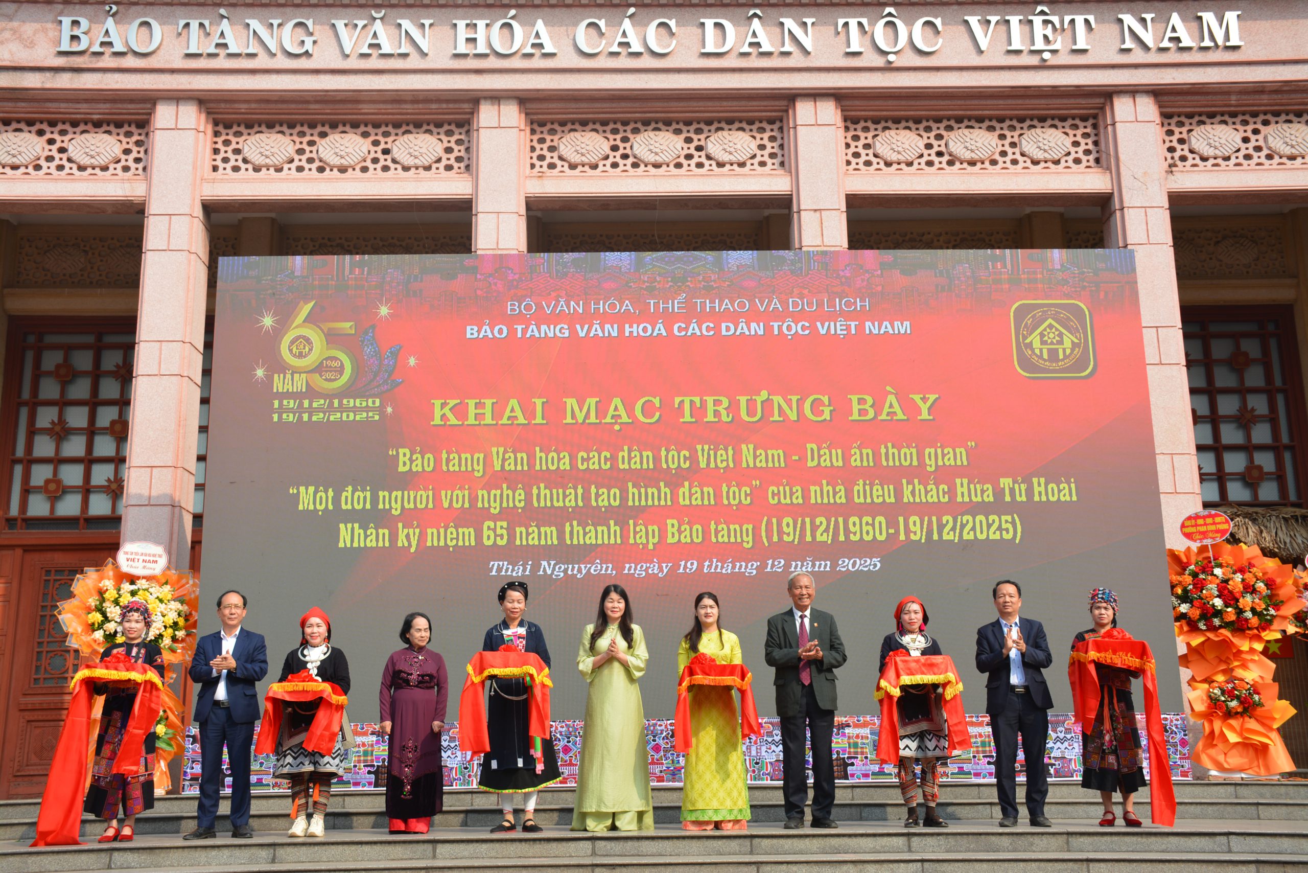 Một số hình ảnh trưng bày “Một đời người với nghệ thuật tạo hình dân tộc” của Cố Nhà điêu khắc Hứa Tử Hoài:Lễ cắt băng khai mạc trưng bày chuyên đề: “Một đời người với nghệ thuật tạo hình dân tộc” của Cố Nhà điêu khắc Hứa Tử Hoài. Các vi đại biểu tham quan trưng bày các tác phẩm tiêu biểu của Cố Nhà điêu khắc Hứa Tử Hoài (nguyên cán bộ Bảo tàng Văn hóa các dân tộc Việt Nam). Bức phù điêu gỗ mô tả các lễ hội lớn ở ba miền đất nước. Tác phẩm: “Lễ hội đua voi”. Tác phẩm: “Lễ hội trống đồng”. Tác phẩm Bếp lửa (năm 1985). Tác phẩm Tuổi thơ (năm 2000). Tác phẩm “Bác Hồ tại chiến dịch Đông Khê”. Tác phẩm “Ác Mộng” – đạt giải Nhất Hội Mỹ thuật Việt Nam năm 1996.