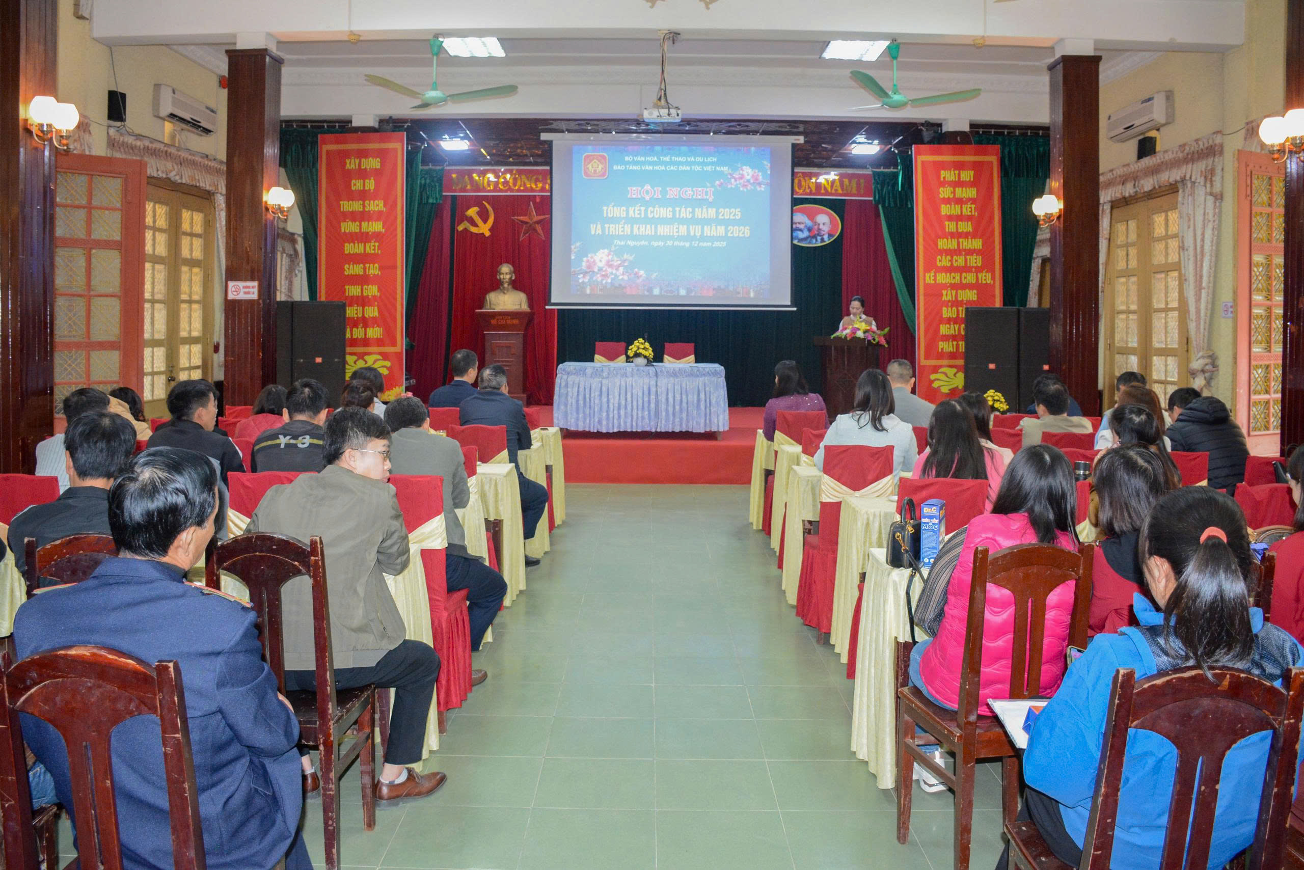 Chiều ngày 30/12/2025, Bảo tàng Văn hóa các dân tộc Việt Nam đã tổ chức hội nghị tổng kết công tác năm 2025 và triển khai nhiệm vụ năm 2026. Tham dự hội nghị có đồng chí Tô Thị Thu Trang – Bí thư Chi bộ, Giám đốc Bảo tàng, cùng các đồng chí trong Ban Chi ủy, Ban Lãnh đạo và toàn thể viên chức, người lao động của đơn vị.